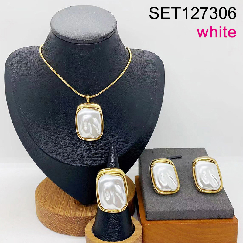 Level B Stainless Steel New Trendy Women Jewelry Drip Oil/Enamel White Rectangle Golden 3pcs SET