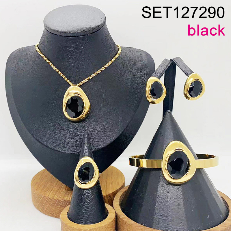 Level B Stainless Steel New Trendy Women Jewelry Black Stone Oval Golden 4pcs SET