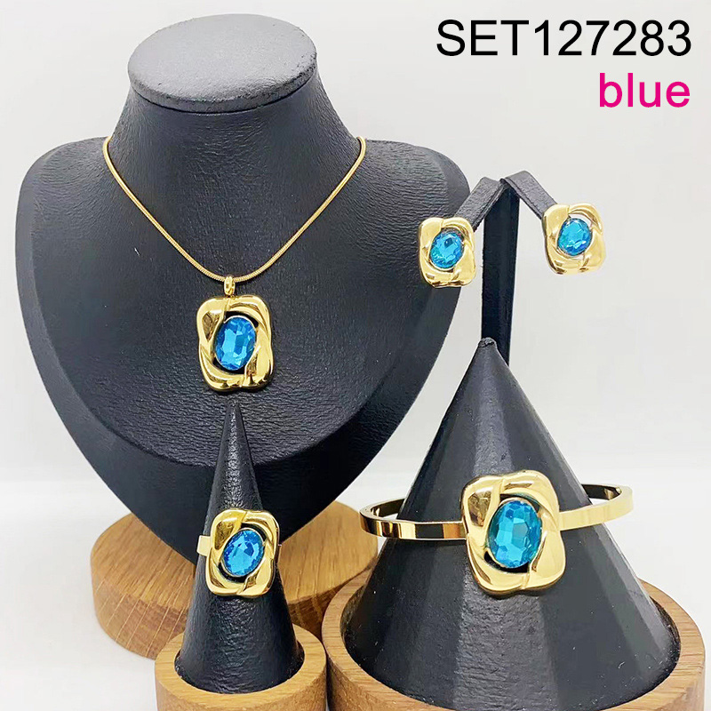 Level B Stainless Steel New Trendy Women Jewelry Blue Stone Geometry Golden 4pcs SET