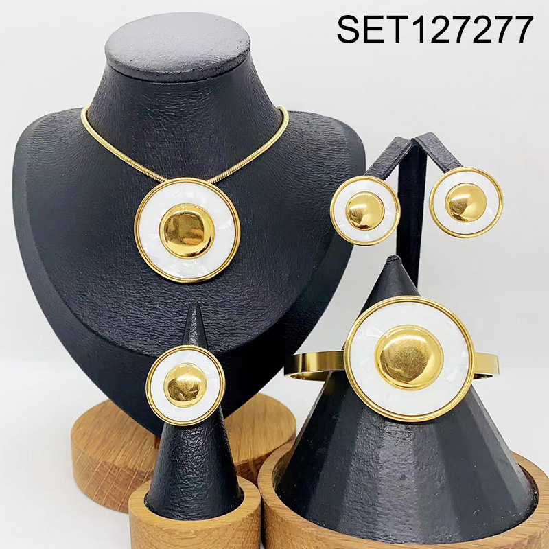 Level B Stainless Steel New Trendy Women Jewelry Round Golden 4pcs SET