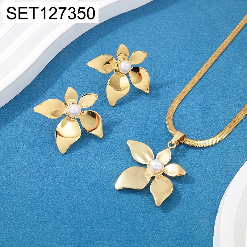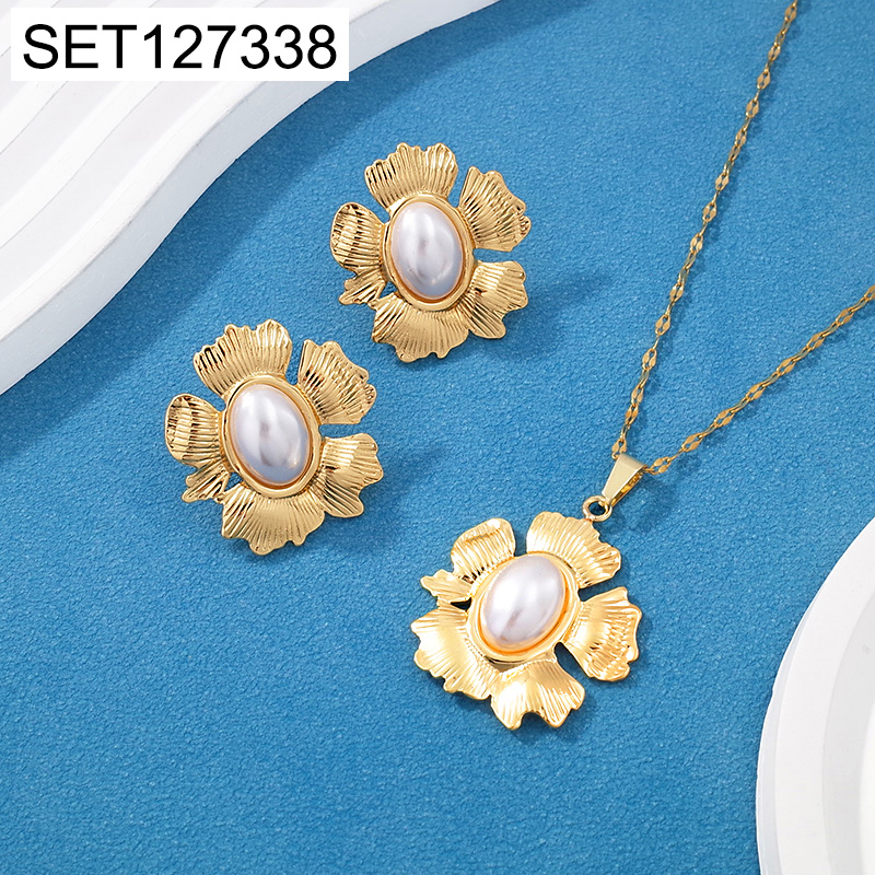 Level C Stainless Steel New Trendy Women Jewelry Pearl Style/Plastic Beads Flower Golden SET