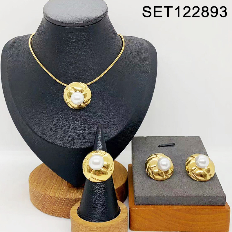 Level B Stainless Steel Jewelry New Trendy Pearl Style/Plastic Beads Round Golden 3pcs SET