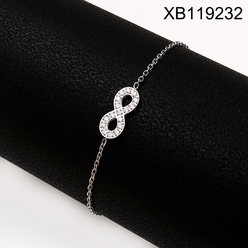 Level A Stainless Steel New Trendy Women Jewelry Digit 8 Steel color CNC Bracelet