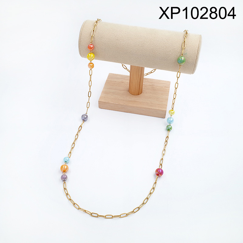 Home > Level A Stainless Steel New Trendy Women Jewelry Glass Beads Golden Sweater Chain Pendant