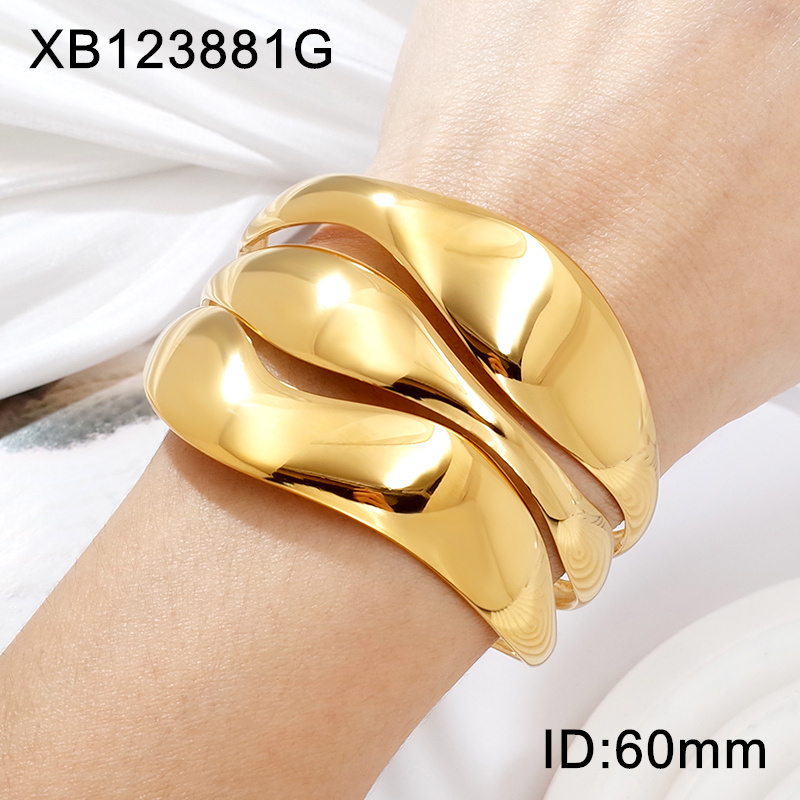 Level A Stainless Steel New Trendy Women Jewelry Golden Open Bangle;Bangle size can be adjusted freely