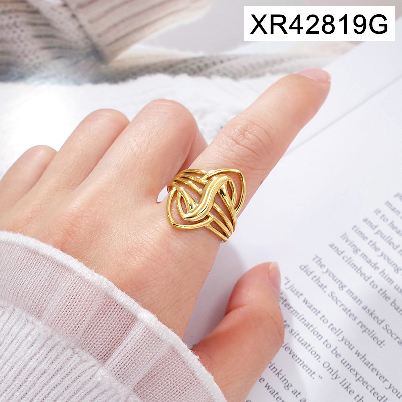 Level A Stainless Steel New Trendy Women Jewelry Golden Open Rings;Ring size can be adjusted freely