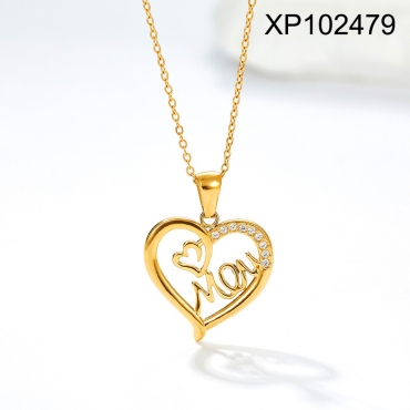 Level A Stainless Steel New Trendy Women Jewelry Heart Golden Mother's Day Pendant