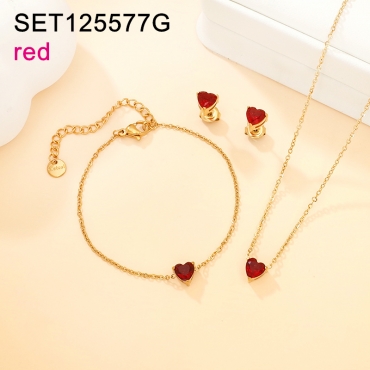 Home > Level A Stainless Steel New Trendy Women Jewelry Heart Red Glass Golden 3pcs SET