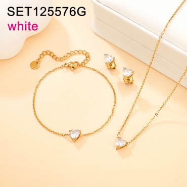 Home > Level A Stainless Steel New Trendy Women Jewelry Heart White Zircon Golden 3pcs SET