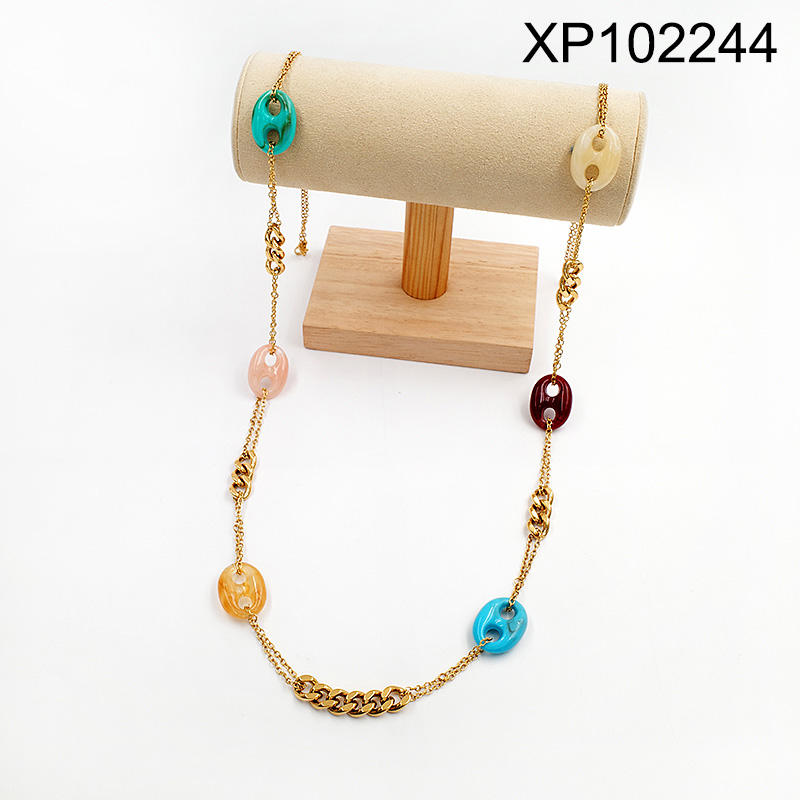 Home > Level A Stainless Steel New Trendy Women Jewelry Oval Pig nose Golden Sweater Chain Pendant