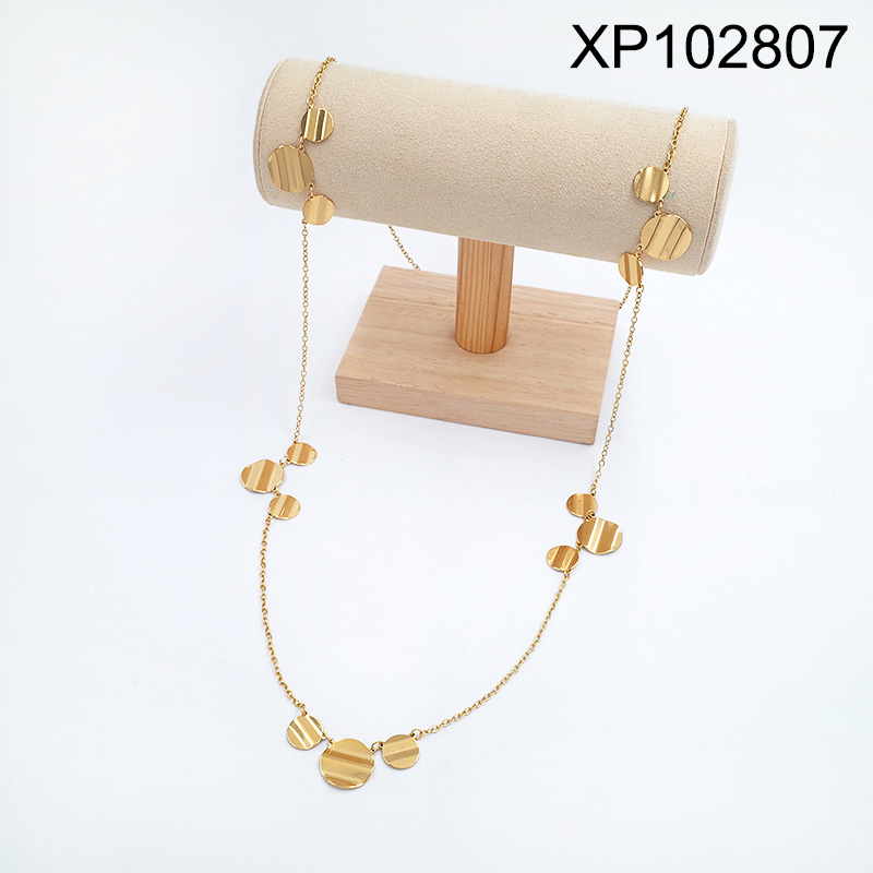 Home > Level A Stainless Steel New Trendy Women Jewelry Round Golden Sweater Chain Pendant