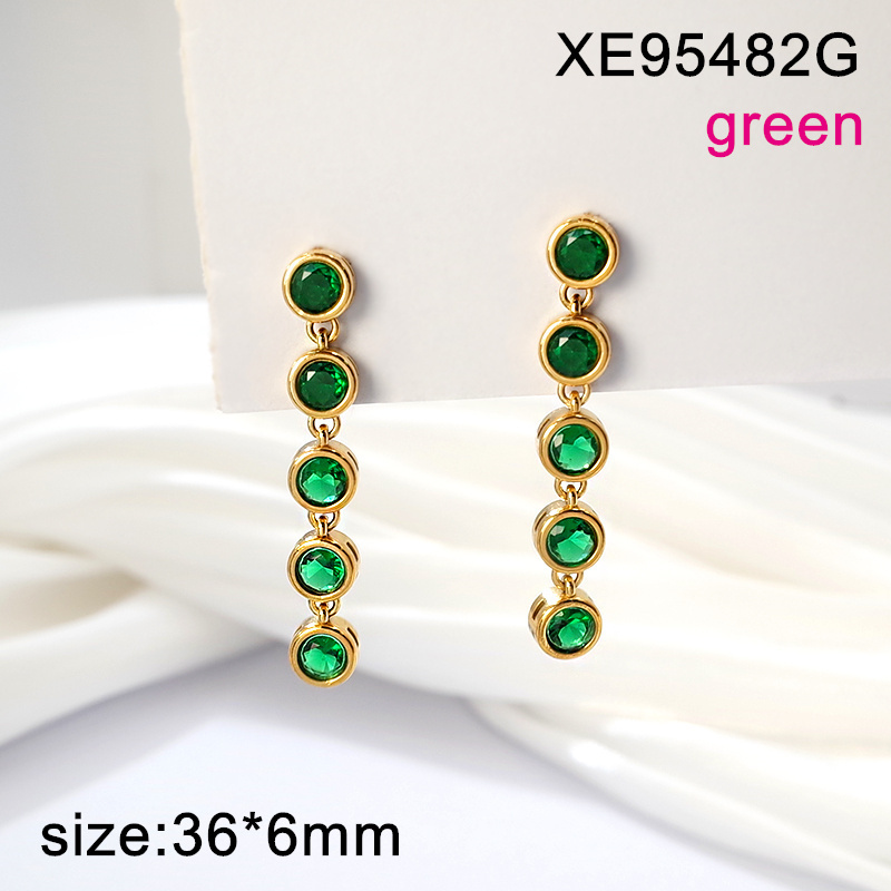 Level A Stainless Steel New Trendy Women Jewelry Round Green Glass Golden Earrings