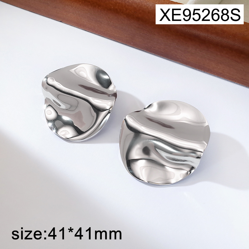 Level A Stainless Steel New Trendy Women Jewelry Steel color Irregular Circular Wrinkled Texture Earrings