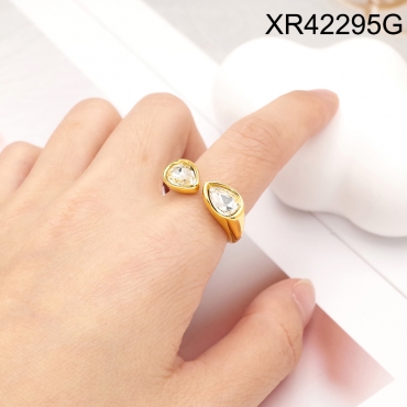 Level A Stainless Steel New Trendy Women Jewelry White Rhinestone Golden Open Rings;Ring size can be adjusted freely