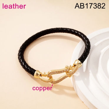 Level B Fashion Jewelry New Trendy Women Jewelry Horseshoe buckle Golden Leather Bracelet;Material:copper (cobre)