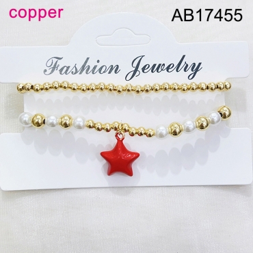 Home > Level B Fashion Jewelry New Trendy Women Jewelry Niche Design Layered Jewelry Pearl Style/Plastic Beads Round Beads Star Golden Elastic Bracelet;Material:copper (cobre)