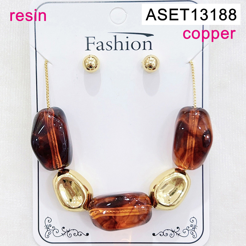 Level B Fashion Jewelry New Trendy Women Jewelry Resin Golden SET;Material:copper (cobre)