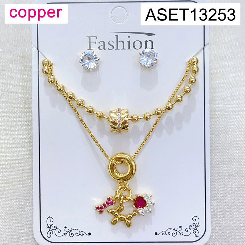 Level B Fashion Jewelry New Trendy Women Jewelry Two Layers Chain Animal Dog Golden SET;Material:copper (cobre)