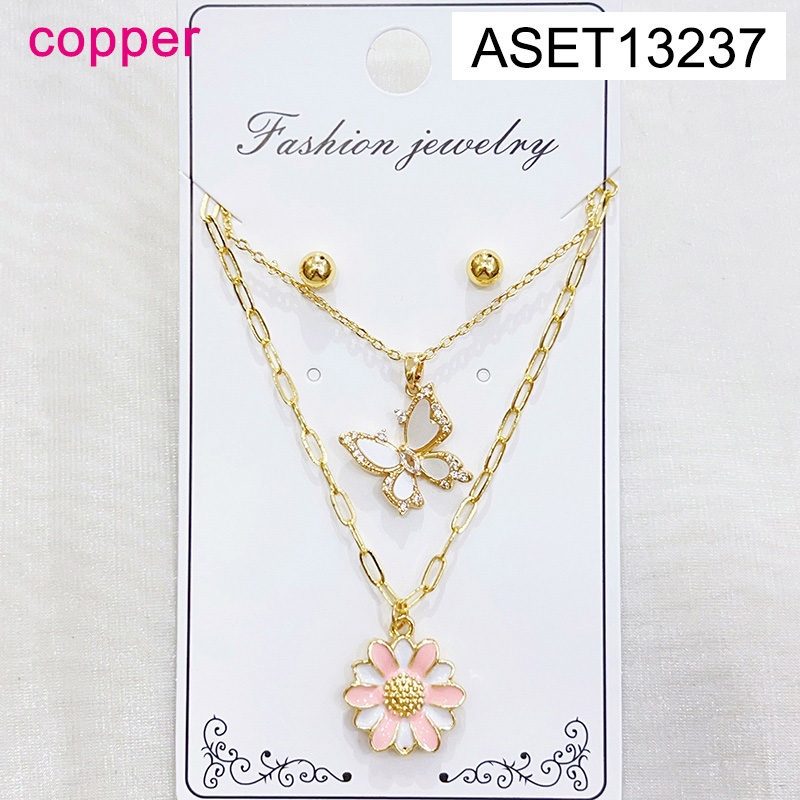 Home > Level B Fashion Jewelry New Trendy Women Jewelry Two Layers Chain Flower Animal Butterfly Golden SET;Material:copper (cobre)