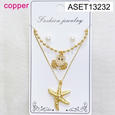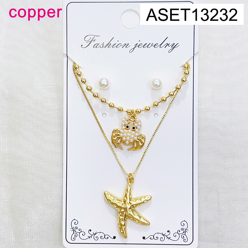 Level B Fashion Jewelry New Trendy Women Jewelry Two Layers Chain Summer beach Animal Starfish Crab Golden SET;Material:copper (cobre)