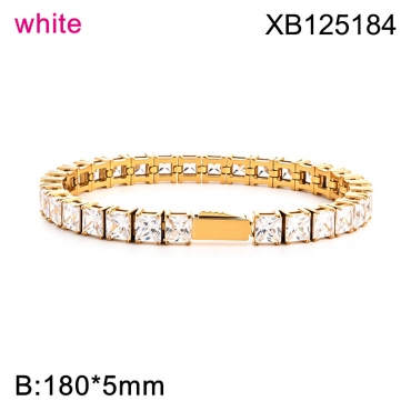 Home > Level B Hot Sale Women Jewelry Golden White Square 316 Stainless Steel Cubic Zirconia Tennis Bracelet