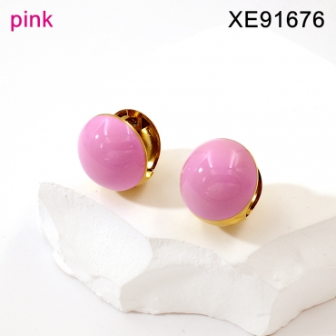 Home > Level B Stainless Steel Jewelry New Trendy Drip Oil/Enamel Pink Round Golden Hoop Earring
