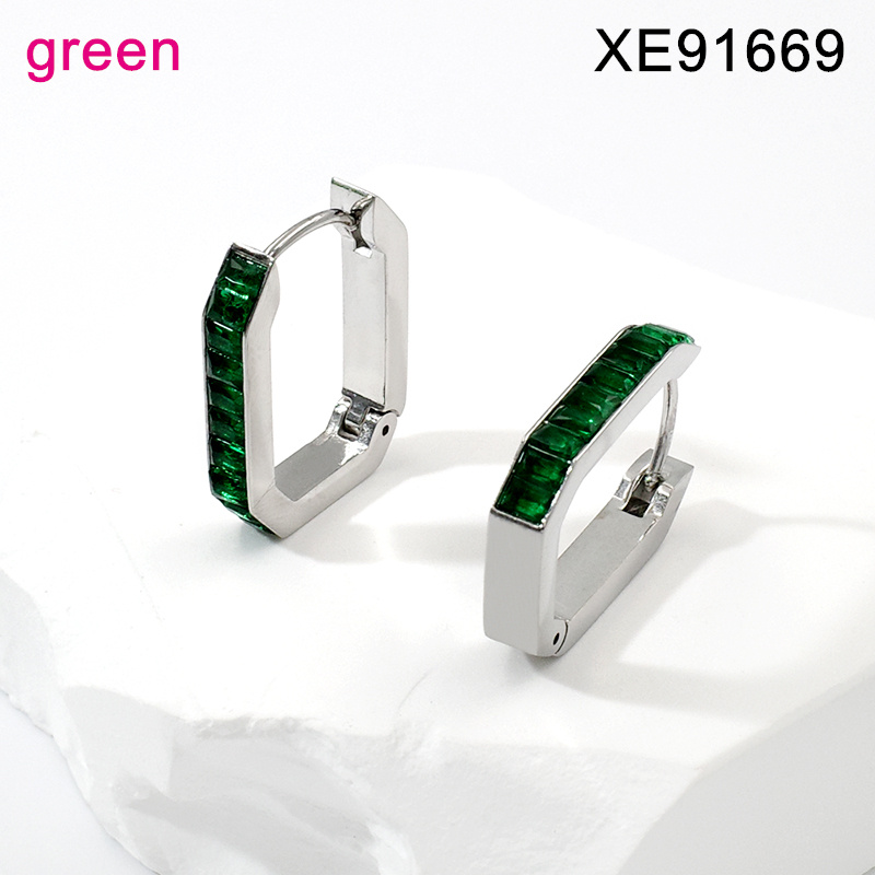 Home > Level B Stainless Steel Jewelry New Trendy Green Stone Geometry Earrings
