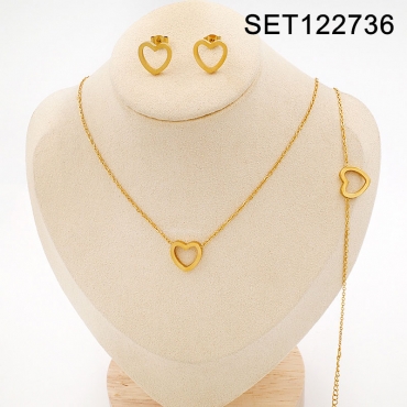 Home > Level B Stainless Steel Jewelry New Trendy Heart Golden Valentine's Day 3pcs SET