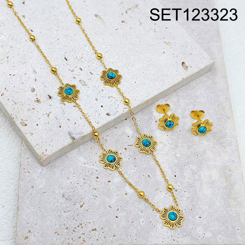 Level B Stainless Steel Jewelry New Trendy Turquoise SYC Golden SET