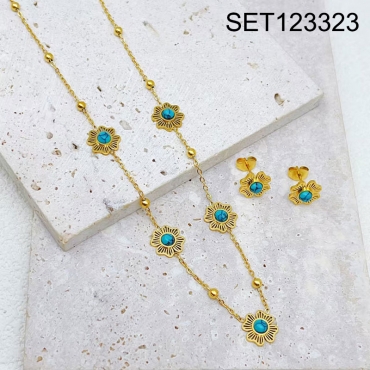 Home > Level B Stainless Steel Jewelry New Trendy Turquoise SYC Golden SET