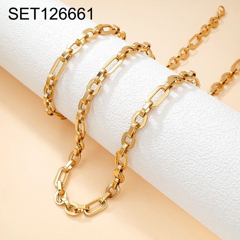 Level B Stainless Steel New Trendy Man Jewelry Golden Chain SET