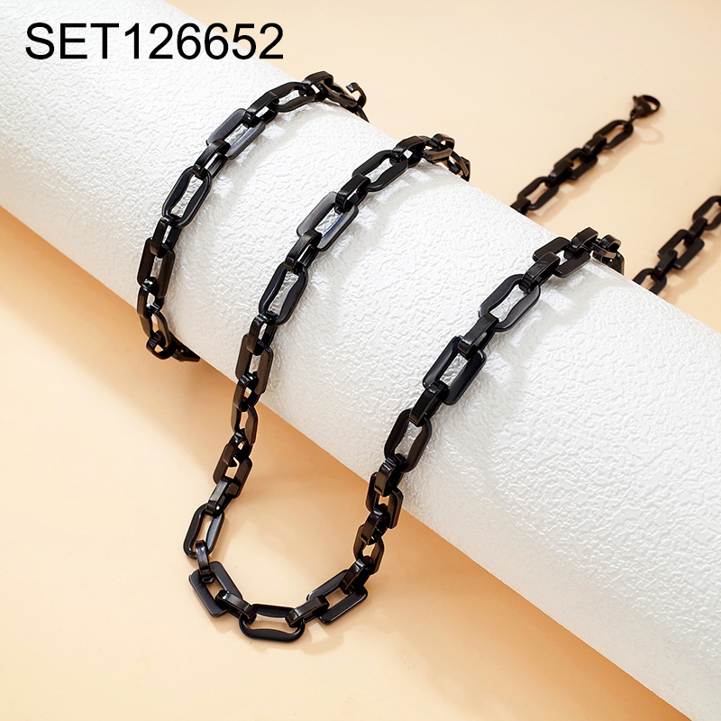 Level B Stainless Steel New Trendy Man Jewelry Plating Black Chain SET