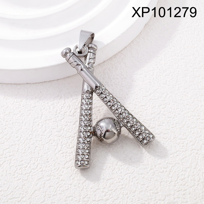Level B Stainless Steel New Trendy Man Jewelry Steel color Baseball Pendant