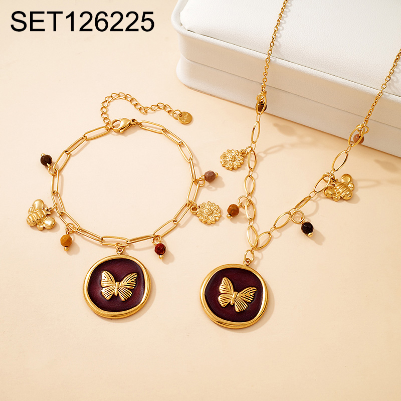 Level B Stainless Steel New Trendy Women Jewelry Animal Butterfly Bee Flower Golden Chain SET