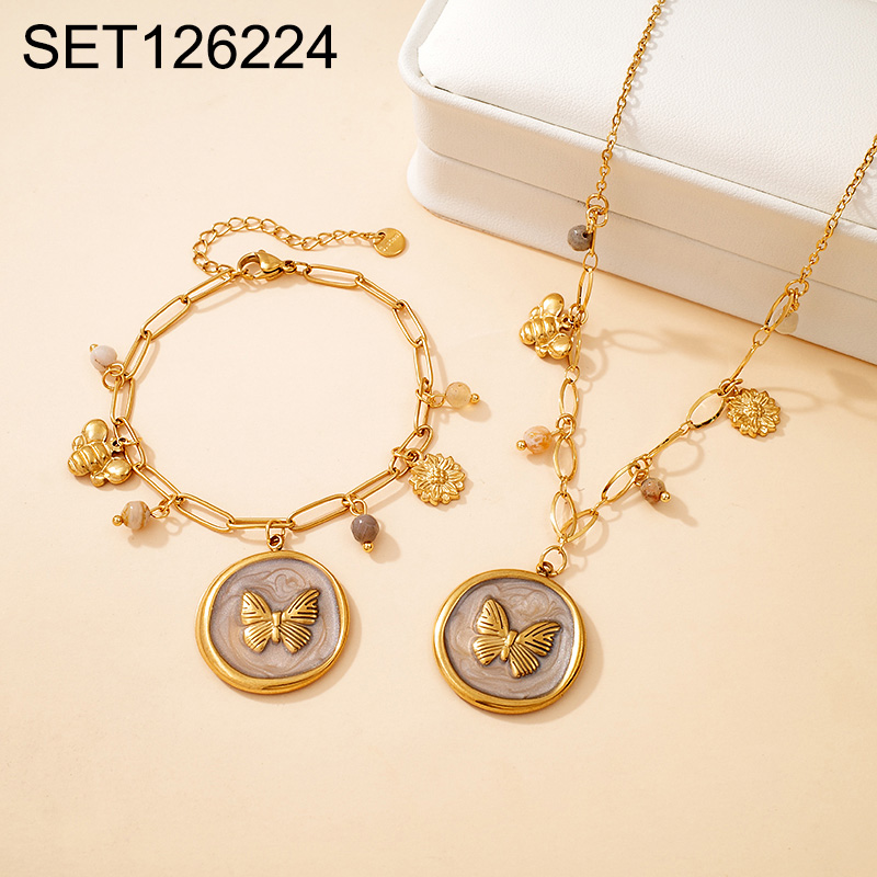 Level B Stainless Steel New Trendy Women Jewelry Animal Butterfly Bee Flower Golden Chain SET