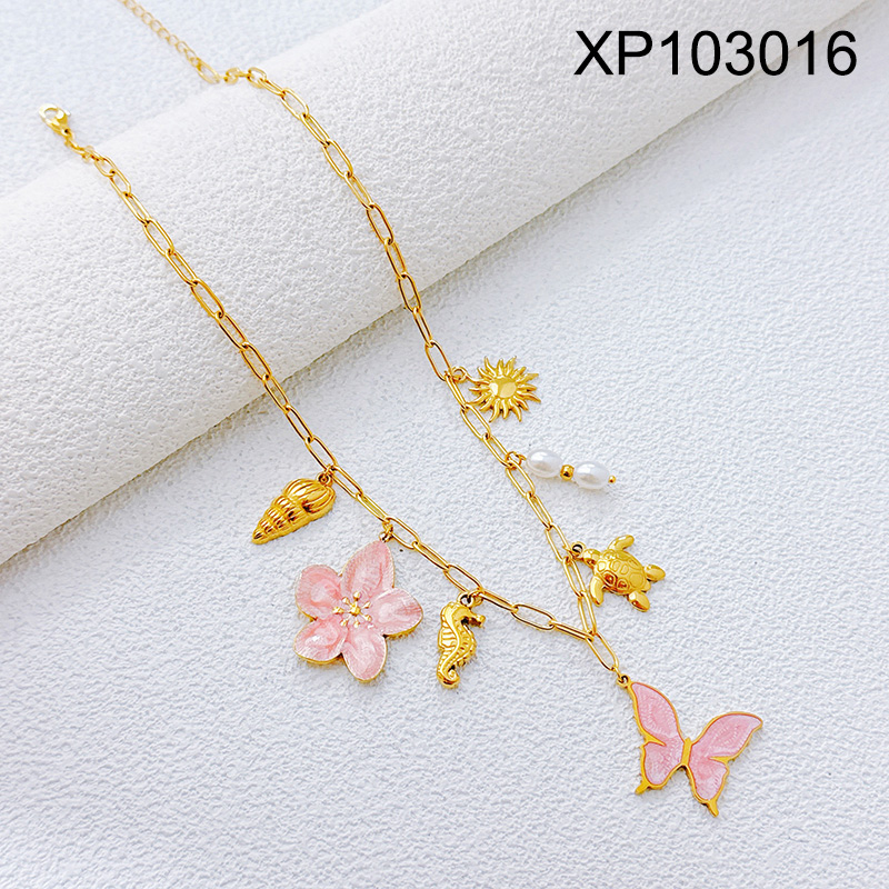 Level B Stainless Steel New Trendy Women Jewelry Animal Butterfly Flower Turtle Golden Pendant