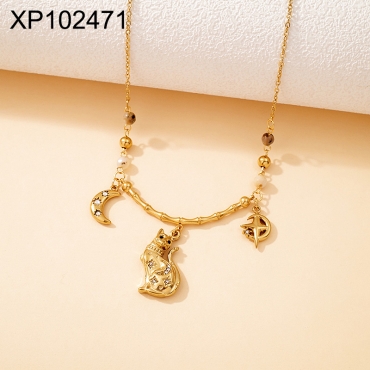 Home > Level B Stainless Steel New Trendy Women Jewelry Animal Cat Moon Star Golden Pendant