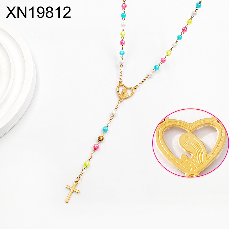 Level B Stainless Steel New Trendy Women Jewelry Bead Chain Religion Cross Golden Necklace