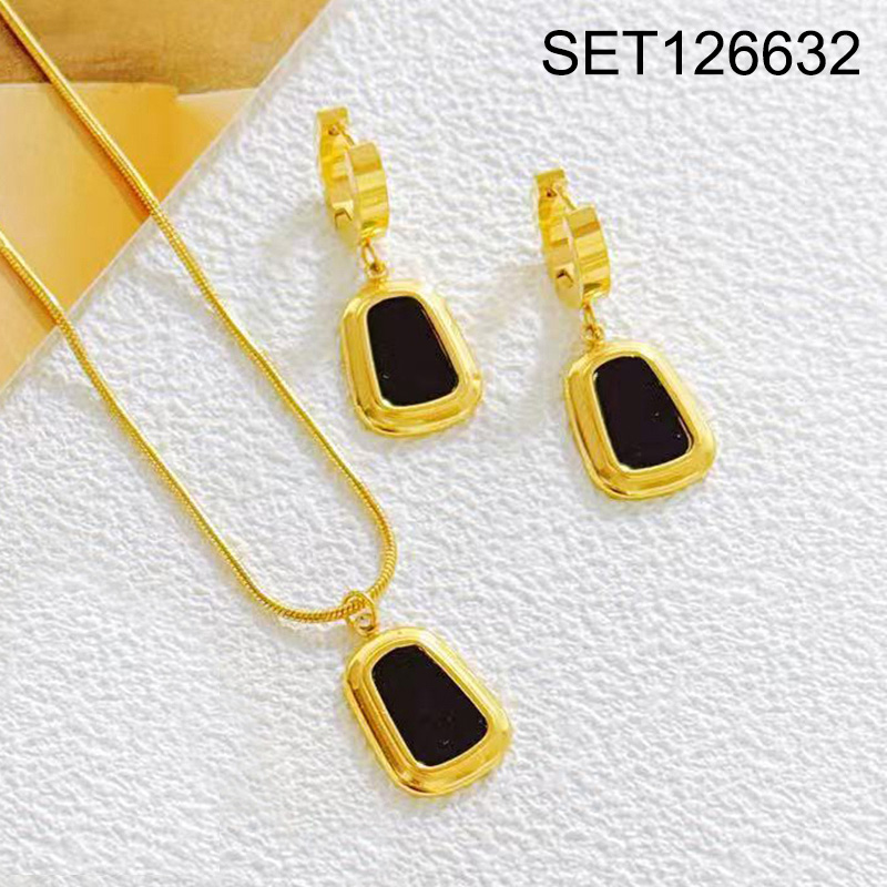 Level B Stainless Steel New Trendy Women Jewelry Black Geometry Golden SET