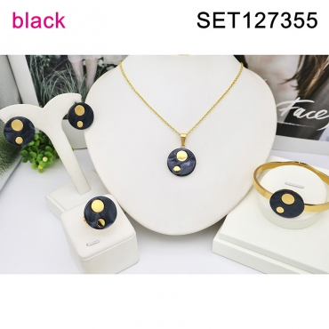 Home > Level B Stainless Steel New Trendy Women Jewelry Black Round Resin Golden 4 pcs SET