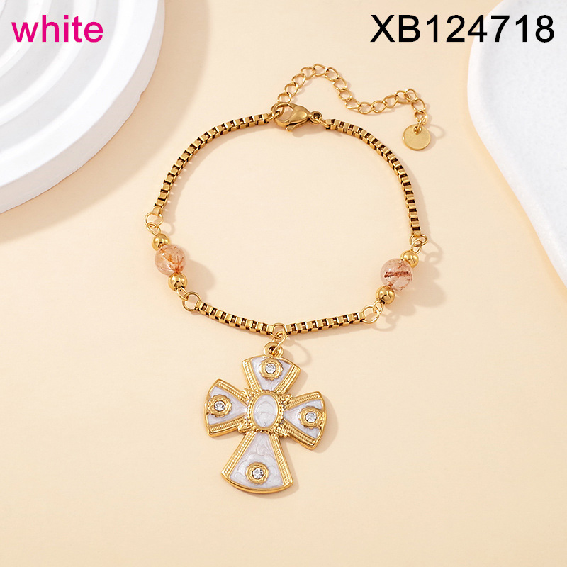 Level B Stainless Steel New Trendy Women Jewelry Drip Oil/Enamel Cross Golden Bracelet