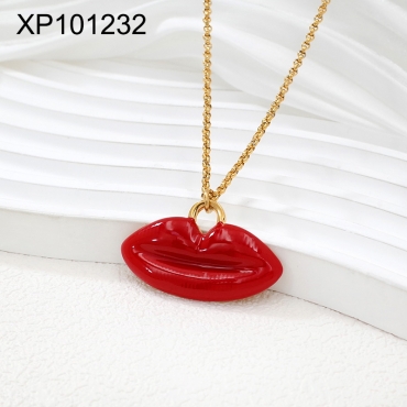 Level B Stainless Steel New Trendy Women Jewelry Drip Oil/Enamel Lips Golden Pendant