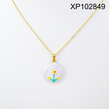 Home > Level B Stainless Steel New Trendy Women Jewelry Drip Oil/Enamel Round Flower Golden Pendant