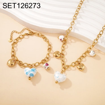 Home > Level B Stainless Steel New Trendy Women Jewelry Heart Golden Chain Valentine's Day SET
