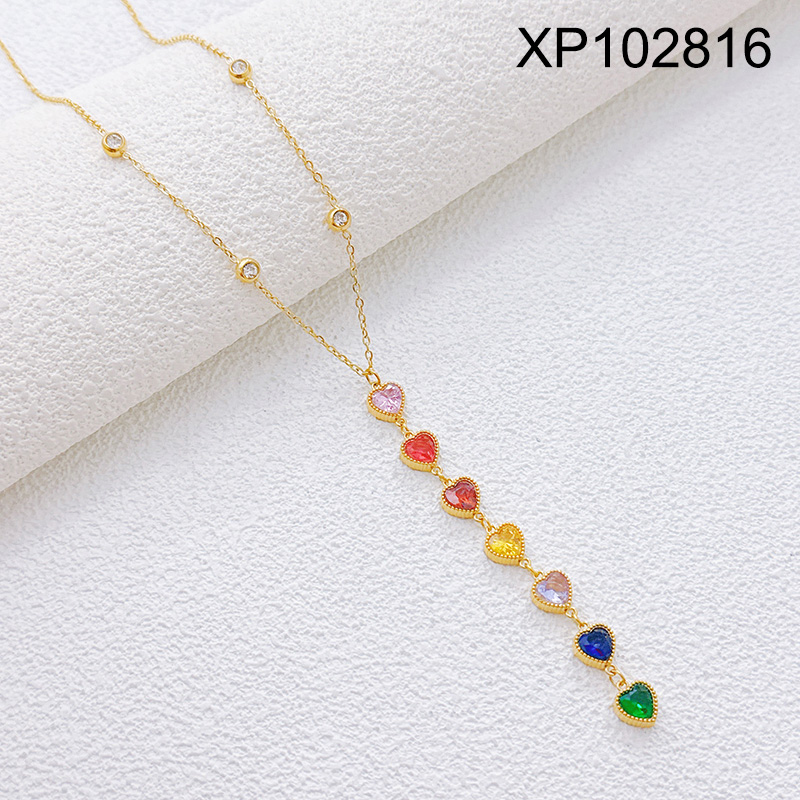 Home > Level B Stainless Steel New Trendy Women Jewelry Heart Mixed color Crystal zirconium Golden Mother's Day Pendant