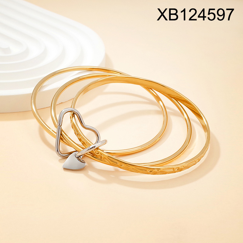 Level B Stainless Steel New Trendy Women Jewelry Heart Two Tone Mother's Day Three-ring Bangle