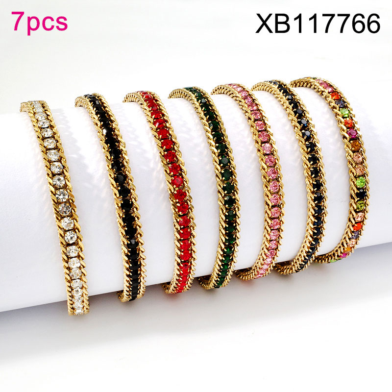 Home > Level B Stainless Steel New Trendy Women Jewelry Mixed color Rhinestone Golden Bracelet