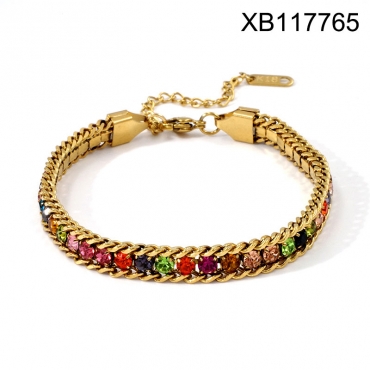 Home > Level B Stainless Steel New Trendy Women Jewelry Mixed color Rhinestone Golden Bracelet