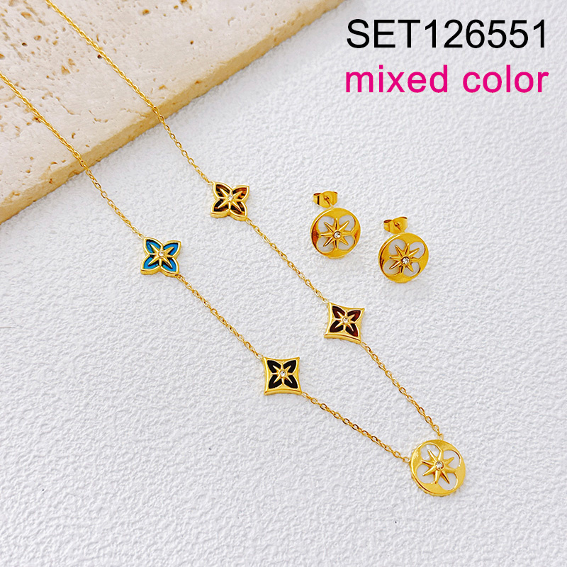 Home > Level B Stainless Steel New Trendy Women Jewelry Mixed color SYC Eight-Pointed Star Golden SET