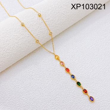 Home > Level B Stainless Steel New Trendy Women Jewelry Oval Mixed color Crystal zirconium Golden Pendant